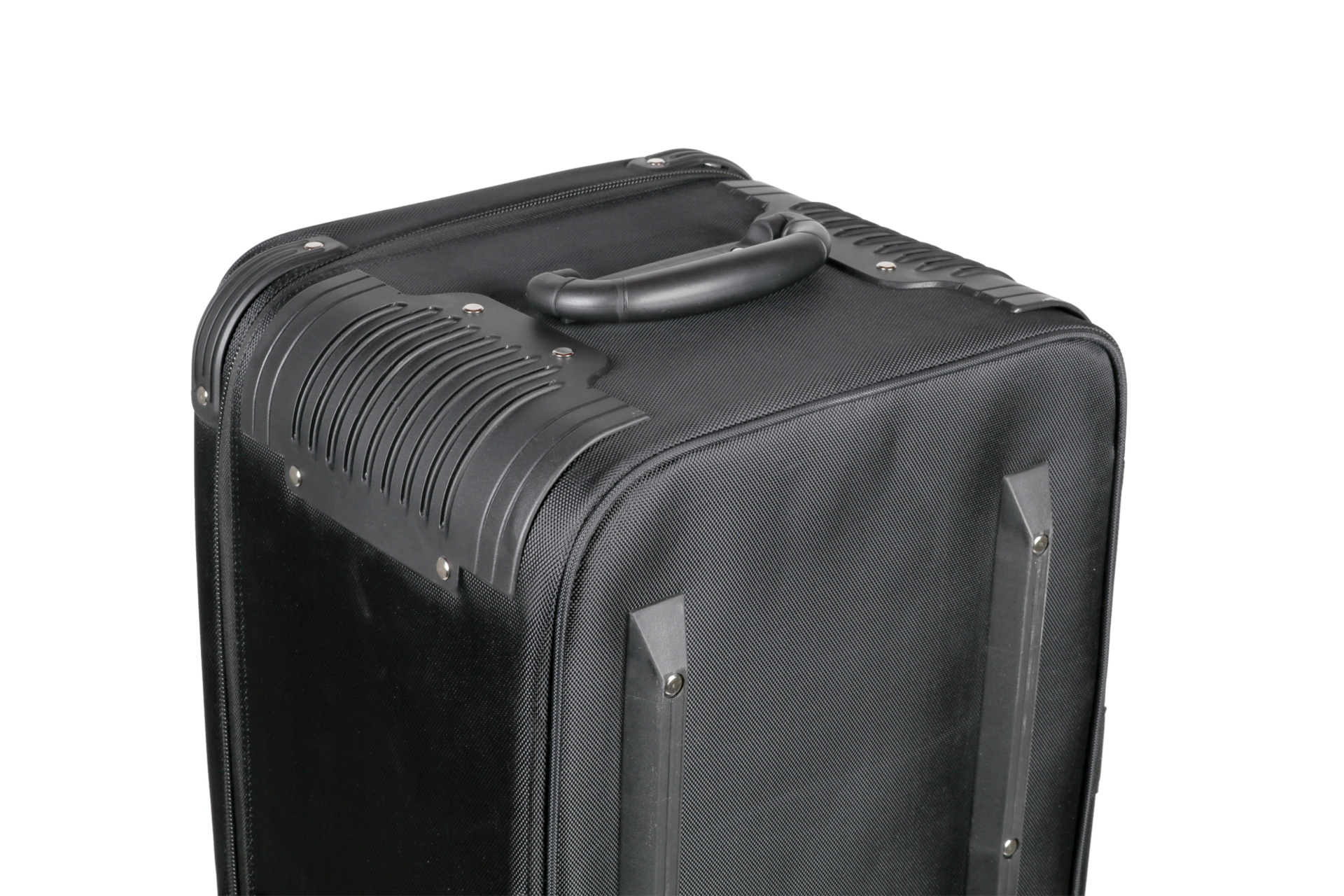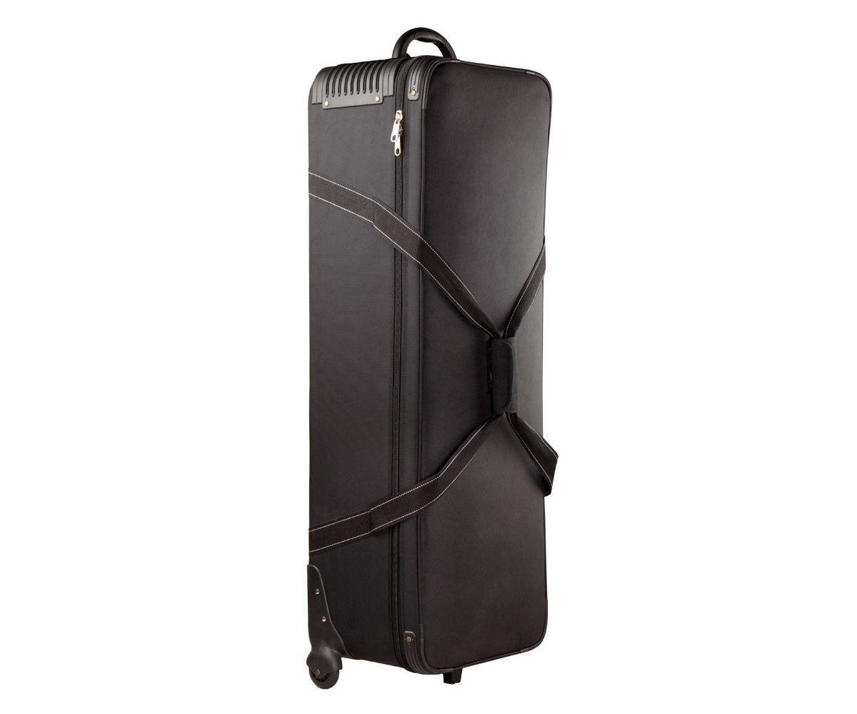 Store, transport, and protect photo gear under 100cm long with the black Light Stand and Tripod Carrying Bag. The bag features a zipper closure, dual, connecting top strap handles, a top haul handle, built-in wheels, and nylon construction. A rubber foot on the bottom of the bag provides upright standing. Corner guards help protect the bag from impact and fabric abrasion. Dimesons 100 x 33.5 x 25 cm